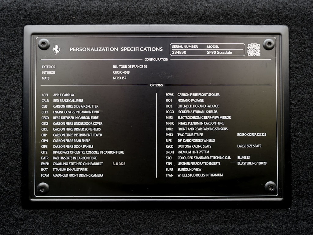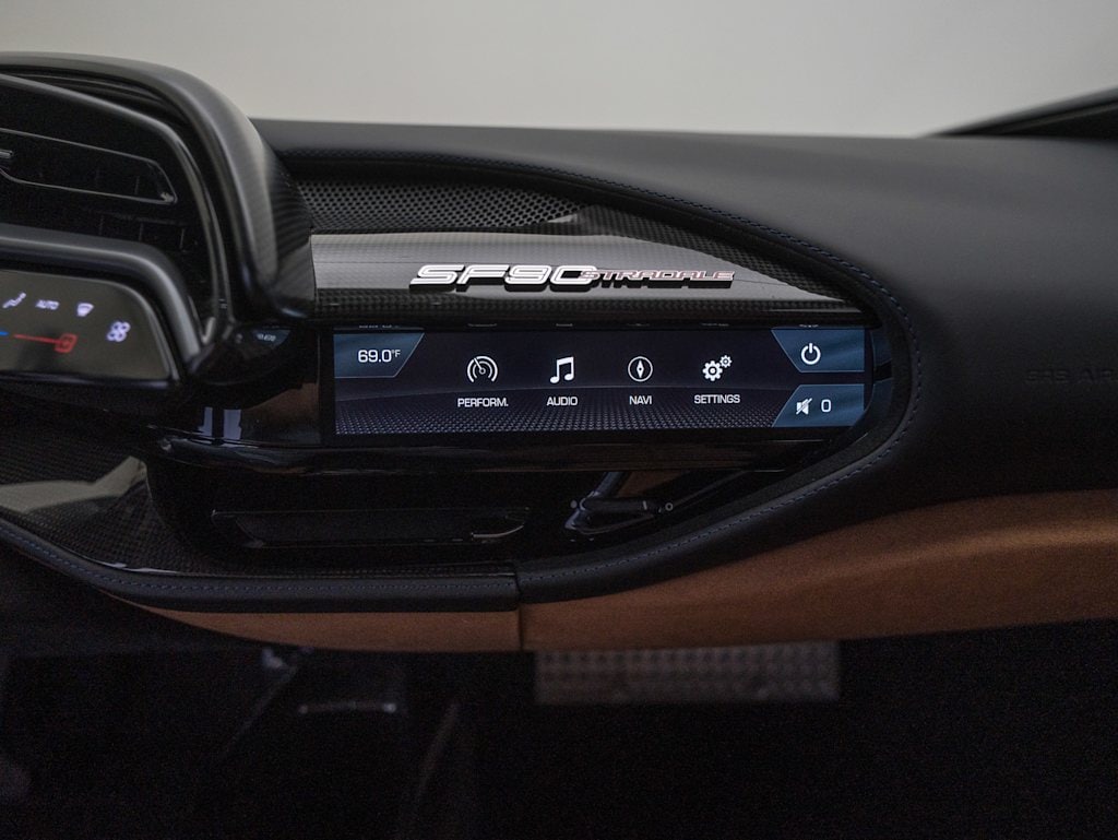 Leather Seats, Navigation, All Wheel Drive, Back-Up Camera, iPod/MP3 Input Ferrari SF90 Stradale with Blu Tour de France Metallic exterior and Cuoio interior features a 8 Cylinder Engine with 986 HP at 8000 RPM*.