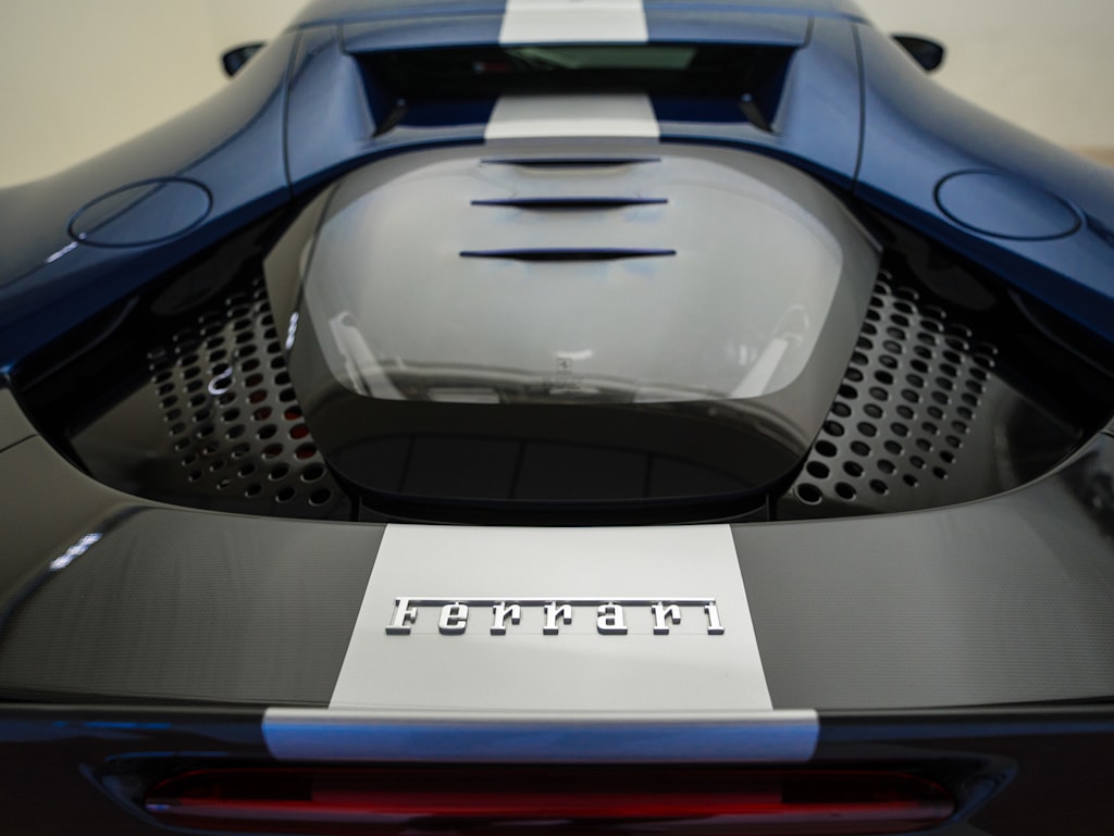 CARFAX 1-Owner. SF90 Stradale trim, Blu Tour de France Metallic exterior and Cuoio interior. Leather, Nav System, Aluminum Wheels, All Wheel Drive, Back-Up Camera, iPod/MP3 Input.